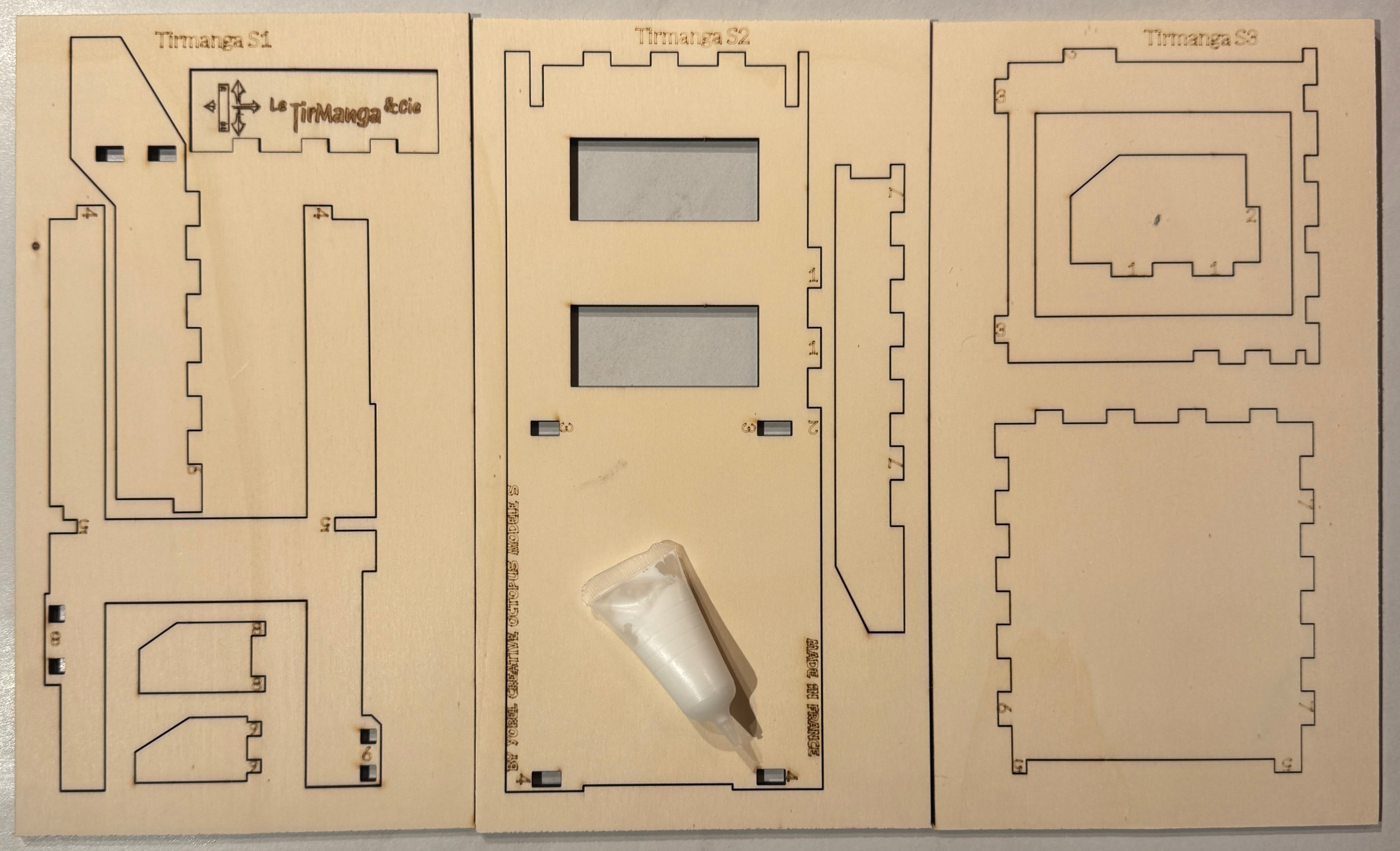 Le TirManga en bois est proposé sous forme de kit à monter soi-même, pensé comme une maquette en bois.